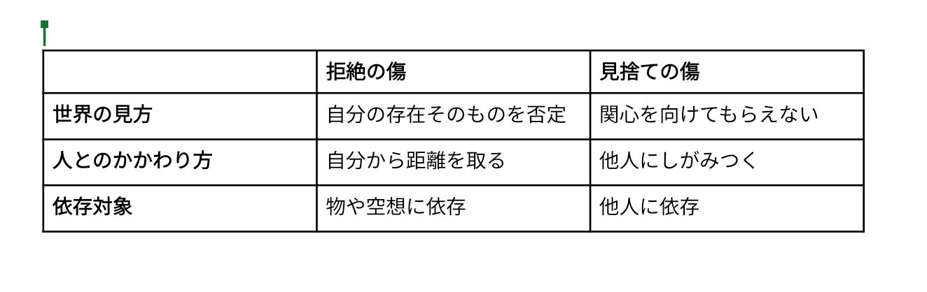 - 拒絶の傷:存在そのものを否定されたように感じる